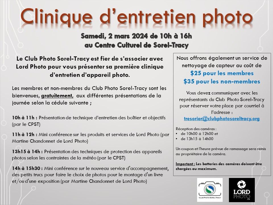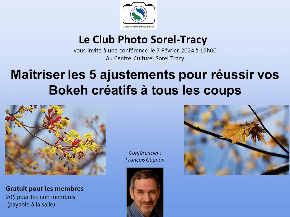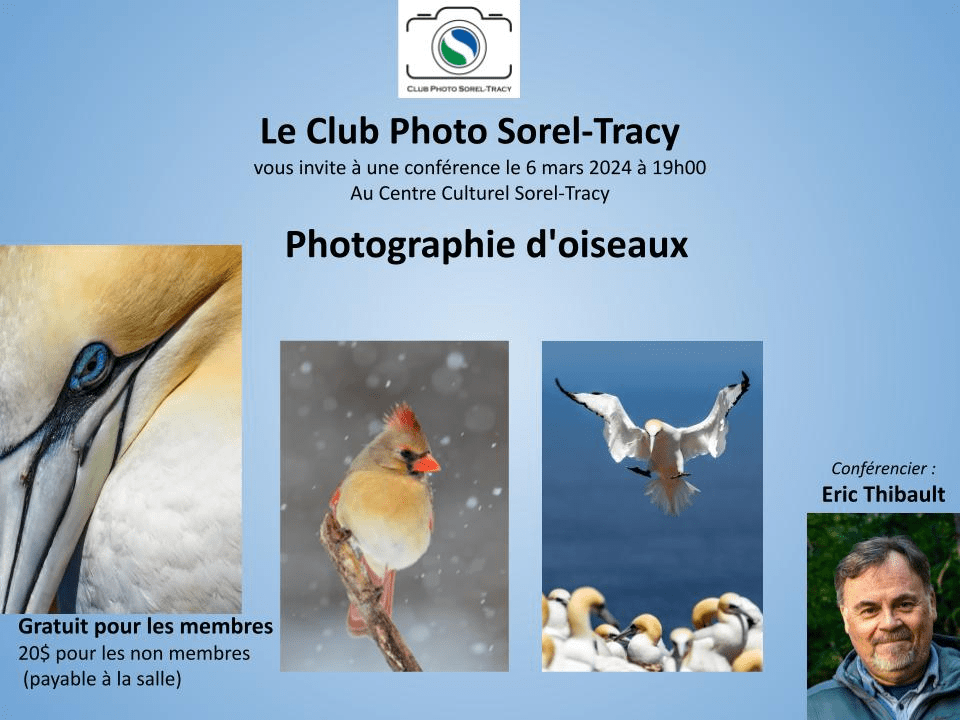 Une conférence supplémentaire s’est rajoutée à notre calendrier. À ne pas manquer! Publié le 26 janvier 2024 par andreannebeaulieuclubphotosoreltracy